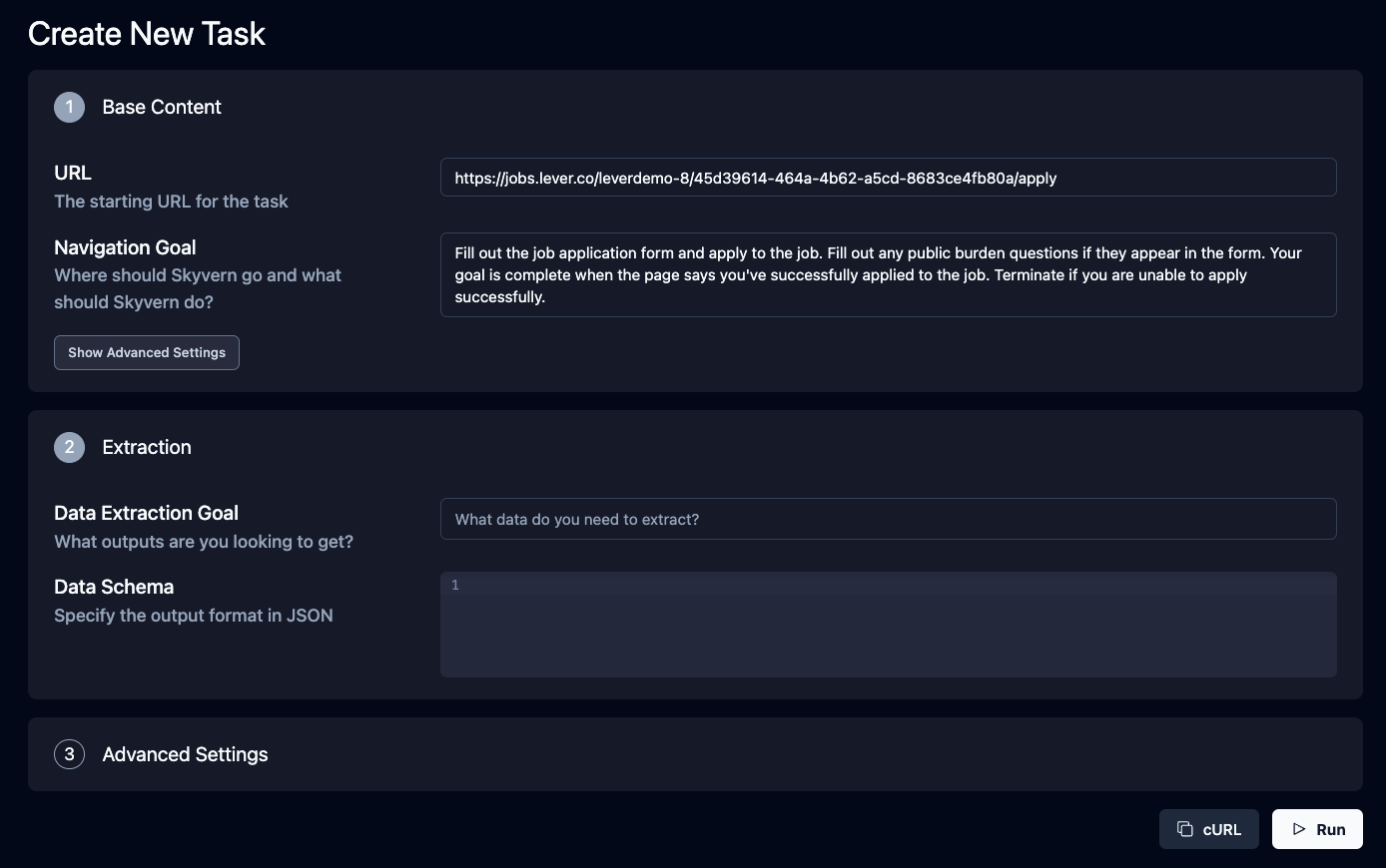 1. Kick off your first task and see Skyvern in action!
