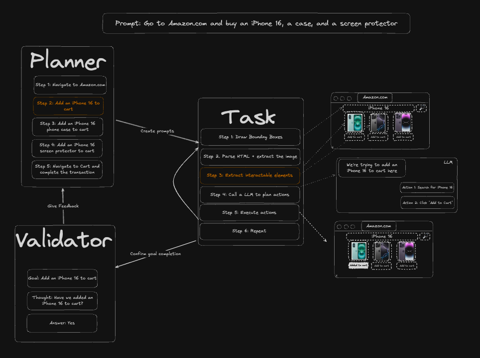 Traditional approaches to browser automations required writing custom scripts for websites, often relying on DOM parsing and XPath-based interactions which would break whenever the website layouts changed.